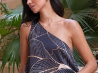 فستان ساتان أسود بطبعة أوراق ذهبية