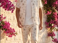 قميص كتان بنصف كم بطبعة زهور
