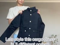 فستان كارجو أسود عصري وأنيق مصنوع من قطن عضوي معتمد من Oekotex. تصميم ضيق بطول قصير مع جيوب على الصدر والخصر وأزرار أمامية لسهولة الاستخدام ولمسة صناعية أنيقة. مثالي لإطلالة يومية أو خروجاتك.